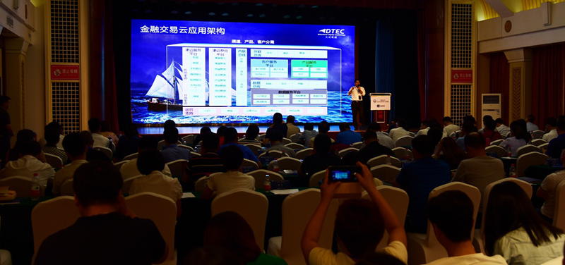 研讨会现场,EVO视讯研发中心副总经理张朝金围绕“金融交易云探索与实践”主题进行演讲,阐述了EVO视讯金融交易云的设计思想、总体架构、解决方案及实际项目应用案例等,为现场来宾呈现了EVO视讯在金融交易云方面的技术实力。
